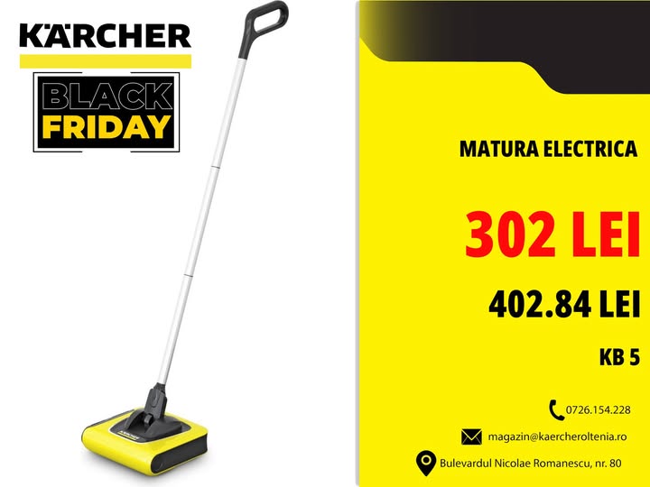 Campania de Black Friday organizată de Kärcher Oltenia este șansa perfectă de a investi în echipamente performante la prețuri avantajoase. Nu rata ocazia de a-ți transforma curățenia într-o experiență simplă și eficientă!
